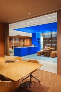 На каждом этаже есть переговорные комнаты. На верхнем этаже есть собственная терраса 216 м2. Конференц-зал на 105 мест.