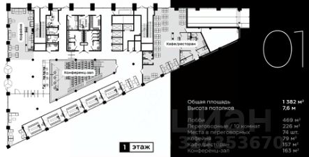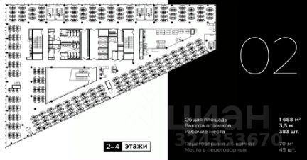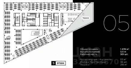 Описание помещения: Рассчитан на 1450 рабочих мест, целиком 5 этаже.