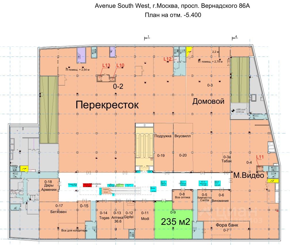 Аренда от собственника. Под ресторан в торговом центре Авеню метро Юго-западная. Площадь на -1 этаже. Высокий траффик. В настоящий момент расположен ресторан. Заведены все коммуникации.