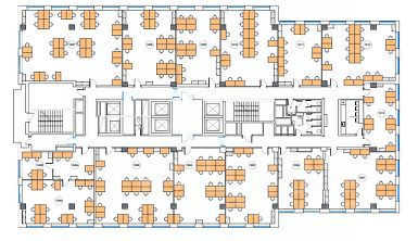 Офис после ремонта: рассчитан на 24 рабочих места, полностью меблированных и готовых к въезду.