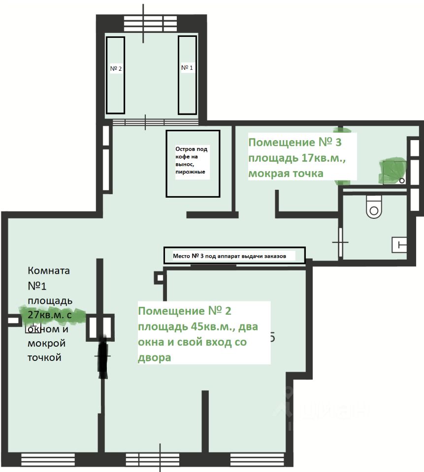 Удобная планировка + помещение расположено по центру дома, что привлекает больше внимание световая вывеска вашего бизнеса