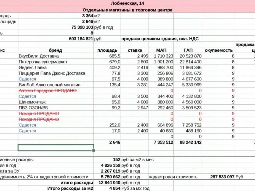 . Арендаторы в ТЦ : Пятерочка, ВкусВилл.Доставка, Яндекс.Лавка, пиццерия Папа Джонс, аптека Горздрав, алкомаркет Винлаб, ПВЗ OZON/Wildberries Строительный магазин, Шиномонтаж и другие.