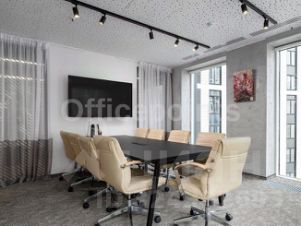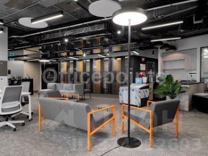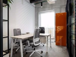 Сервисный офис представляет собой пространства премиум-класса. Оборудовано все необходимое для работы и отдыха в перерывах. Вмещает до 152 рабочих мест, оборудовано переговорными и board-room. В помещениях качественная офисная отделка с мебелью. Смешанная планировка, центральная система кондиционирования и приточно-вытяжная система вентиляции.