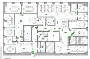 Описание помещения: Блок функциональной планировки, есть зона ресепшн, рабочая зона open space, отдельные кабинеты, переговорные комнаты, кухня и собственные санузлы. Выполнен современный ремонт.
