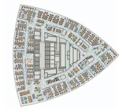 Офисное пространство имеет эффективную планировку. Предусмотрены кабинеты на 330 мест, 41 рабочее место в общем пространстве, переговорные, мягкие зоны для отдыха и общения, кухни со встроенной техникой, телефонные кабинки для индивидуальной работы, зона ресепшена, амфитеатр и лекторий.