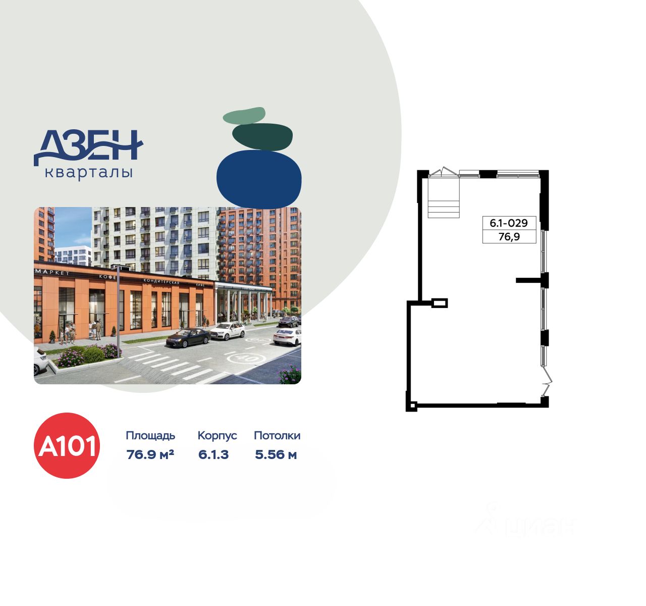 Сдается помещение площадью 76.90. на 1-м этаже ЖК "Дзен-кварталы".