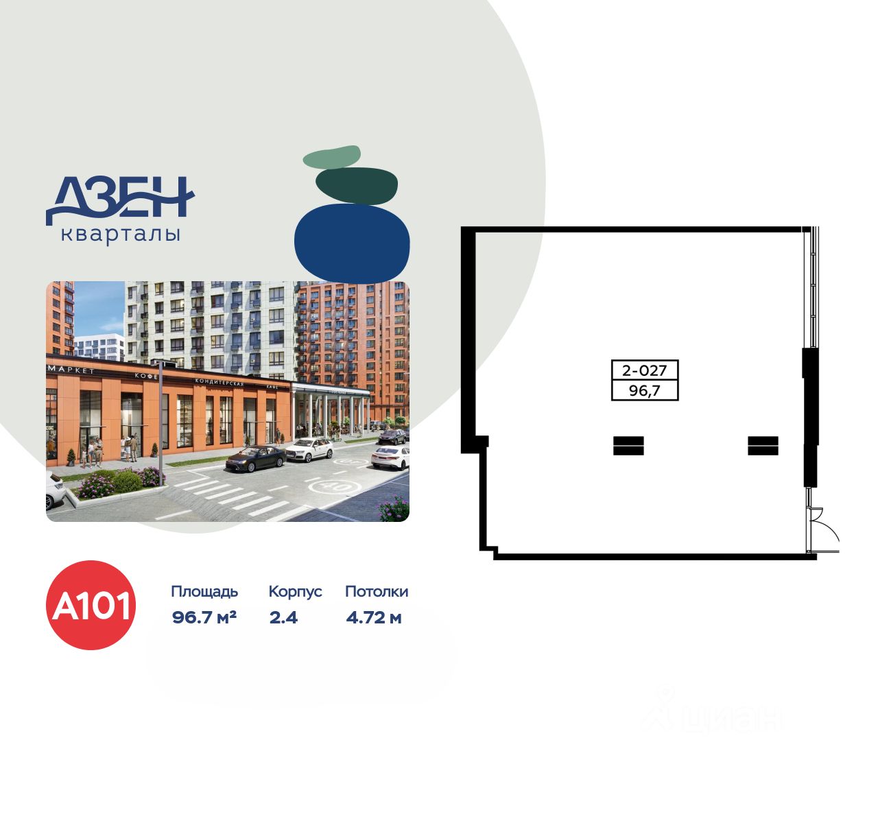 Сдается помещение площадью 96.70. на 1-м этаже ЖК "Дзен-кварталы".