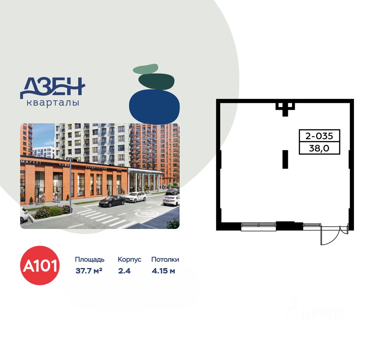 Сдается помещение площадью 37.70. на 1-м этаже ЖК "Дзен-кварталы".