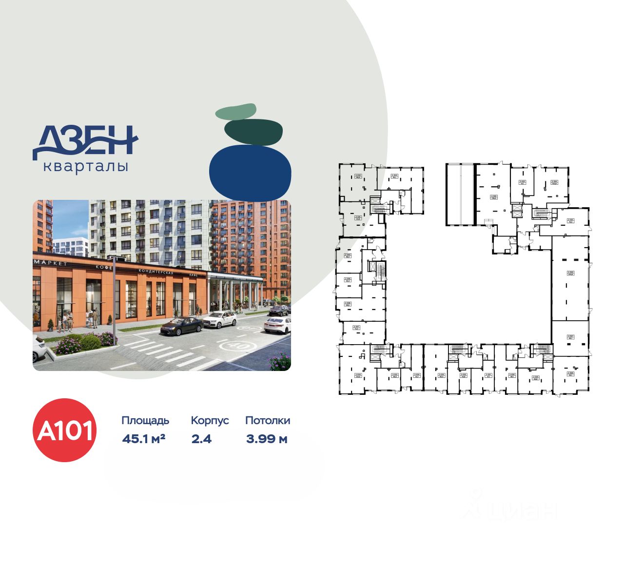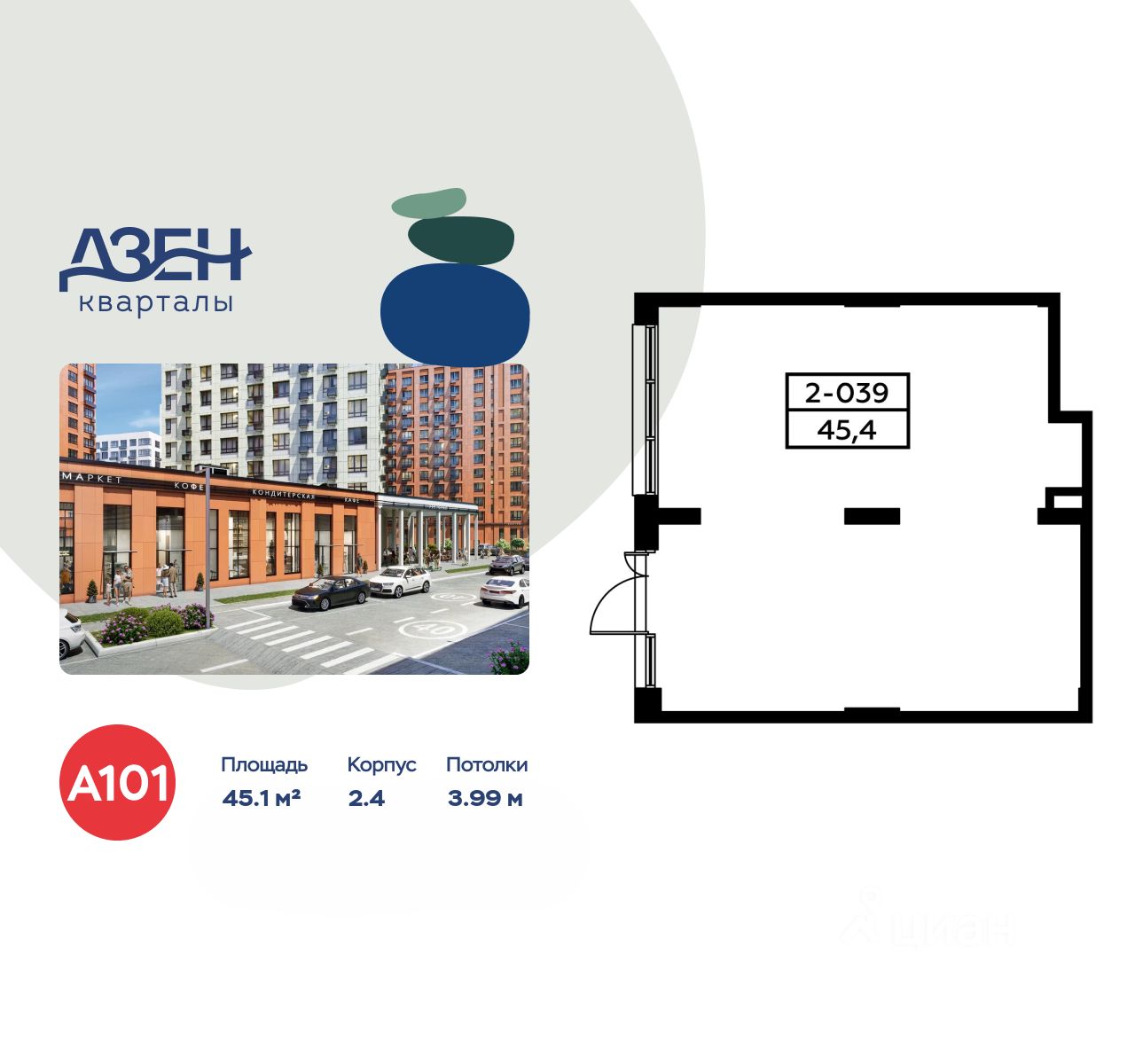 Сдается помещение площадью 45.10. на 1-м этаже ЖК "Дзен-кварталы".