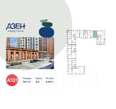 Сдается помещение площадью 72.70. на 1-м этаже ЖК "Дзен-кварталы".