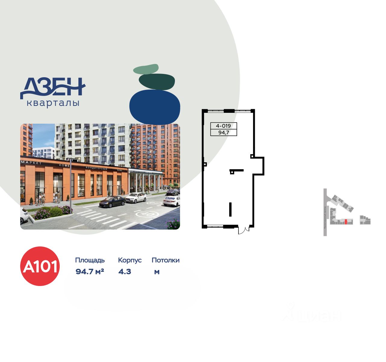 Сдается помещение площадью 94.70. на 1-м этаже ЖК "Дзен-кварталы".