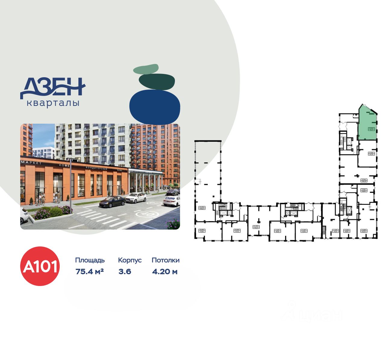Сдается помещение площадью 75.40. на 1-м этаже ЖК "Дзен-кварталы".