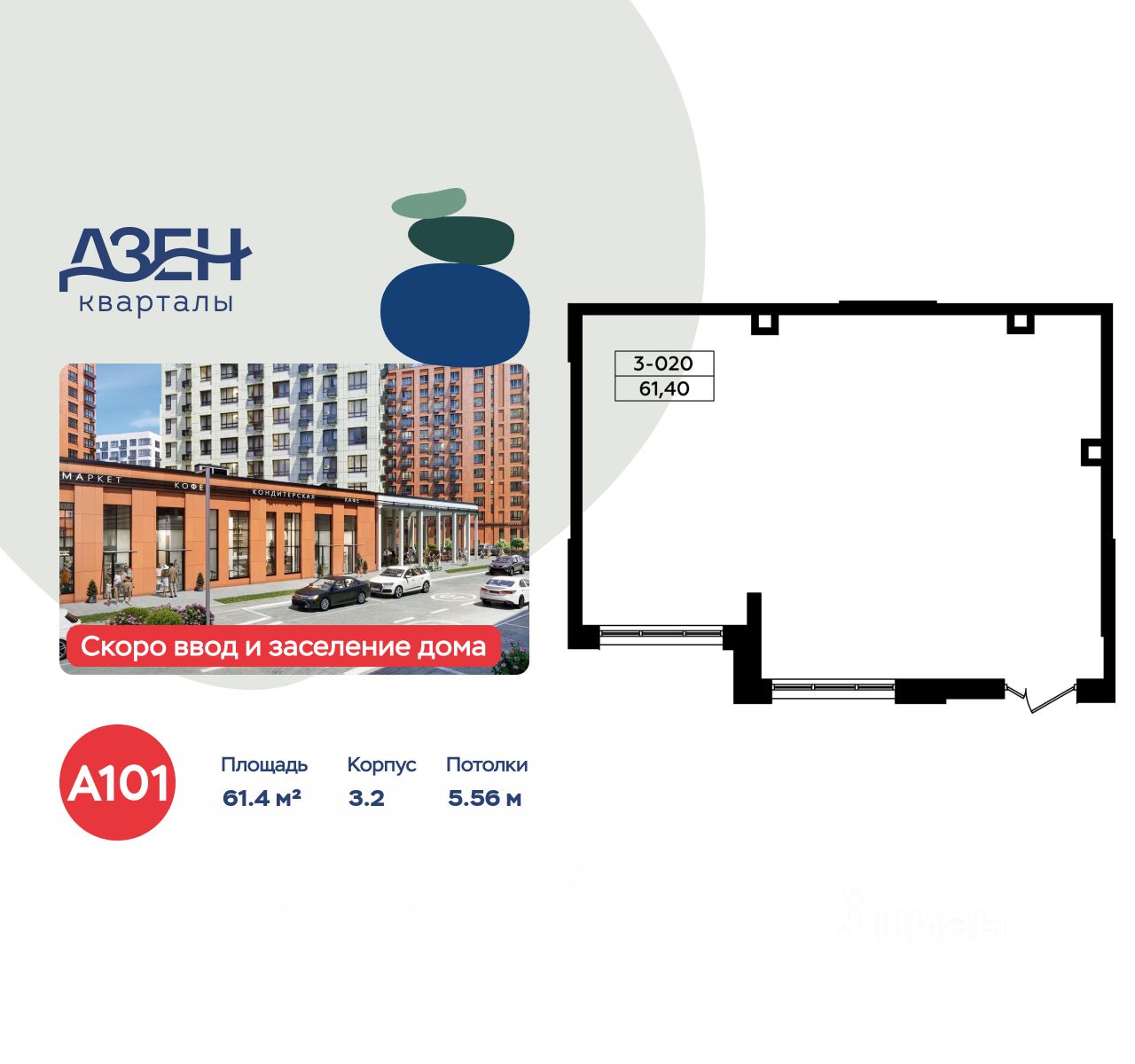 Сдается помещение площадью 61.40. на 1-м этаже ЖК "Дзен-кварталы".