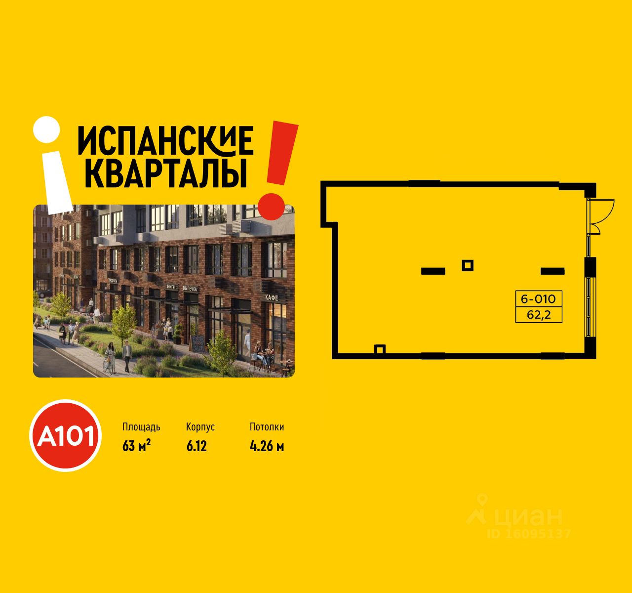 Сдается помещение площадью 63.00. на 1-м этаже ЖК "Испанские кварталы". Трафик 807 человек в день.
