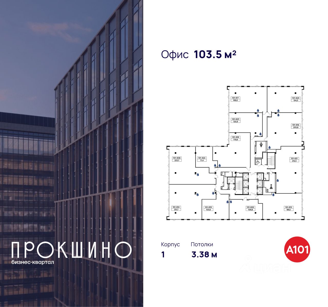Сдаётся офисное помещение площадью 103.5 кв. м. в Бизнес-квартал "Прокшино". Чистовая отделка. Витринное остекление с видом на улицу. Высота потолков 3.38 м. Выделенная электрическая мощность — 10 кВт. Общий вход с улицы. Стоимость аренды помещения — 362 250 руб. в месяц . Способы оплаты и более подробная информация по телефону. Офисное помещение в бизнес-квартале "Прокшино" на юго-западе Москвы в 1й минуте от метро "Прокшино".