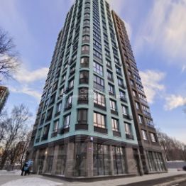 Входная группа выходит на парк, рядом детские площадки, тренажеры и зона отдыха. Витринные окна.