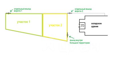 Въезд ворота: отдельный с улицы (ворота ширина 7 м) и резервный с большой территории.