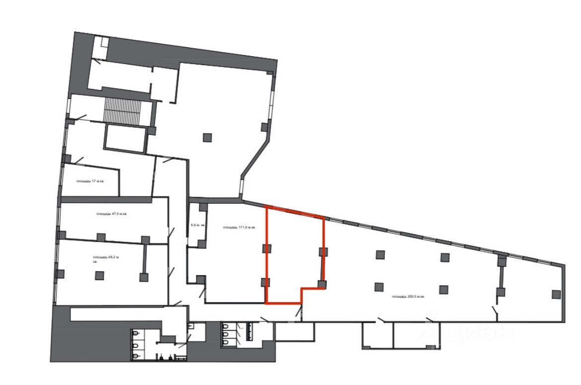 Сам офис 48 кв м + коридорный коэффициент (места общего пользования, санузлы). В договоре будет площадь 59,8 кв м.