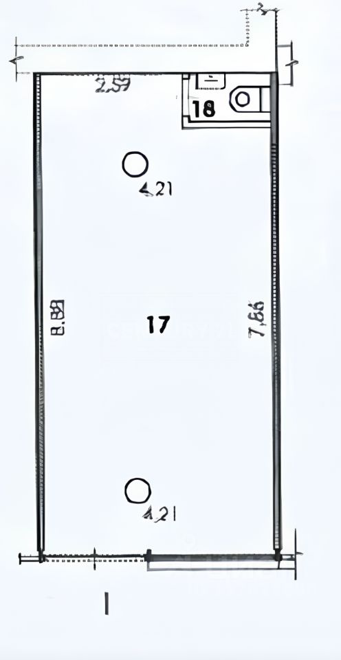 Общая площадь - 17 м².