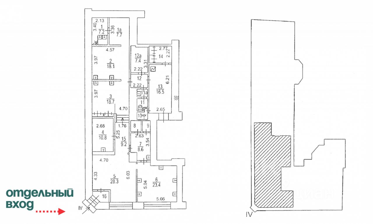 Площадь помещения - 176,9 м2, 1 этаж, отдельный вход;
