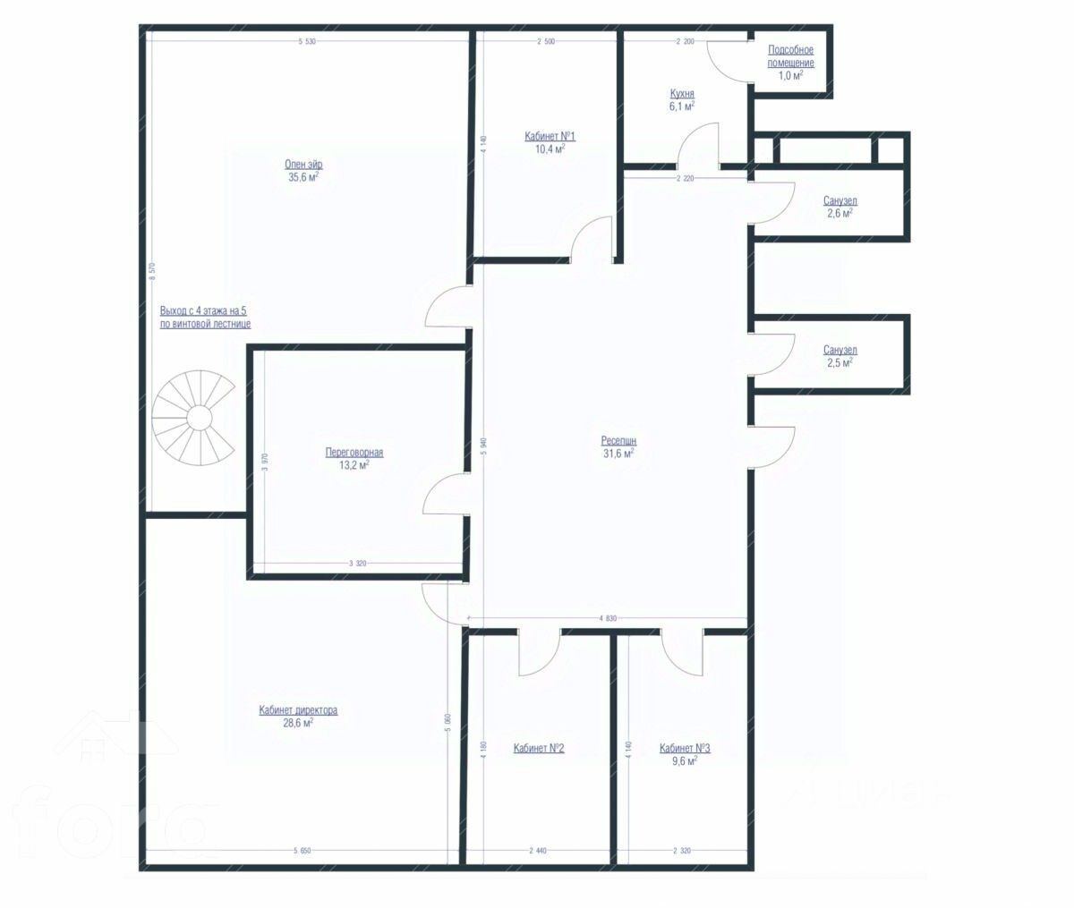 Сдается в аренду просторный офис площадью 203,1 кв.м. на 4 мансардном этаже.