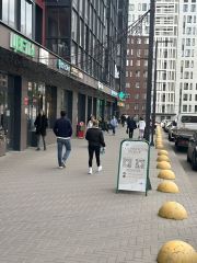 Место прямо у входа и главного тротуара между несколькими ЖК.