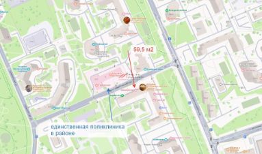 Ранее располагались мед. лаборатория "ЛабКвест", салон красоты. Помещение располагается в центре жилого массива, в пешей доступности от двух станций метро, напротив единственная поликлиника в районе. Интенсивный автомобильный и пешеходный трафик вдоль помещения. Окружение: магазин "Пятерочка", сети аптек "Здравсити" и "Добрая аптека", салоны красоты, кофейни, пункты выдачи заказов ВБ и Озон, и прочие.