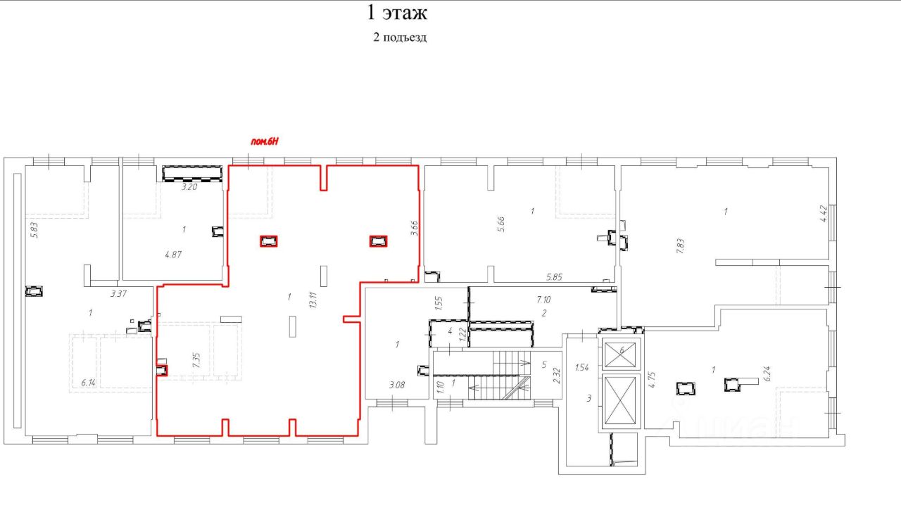 Помещение располагается на 1 этаже, корпус 1, подъезд 2,