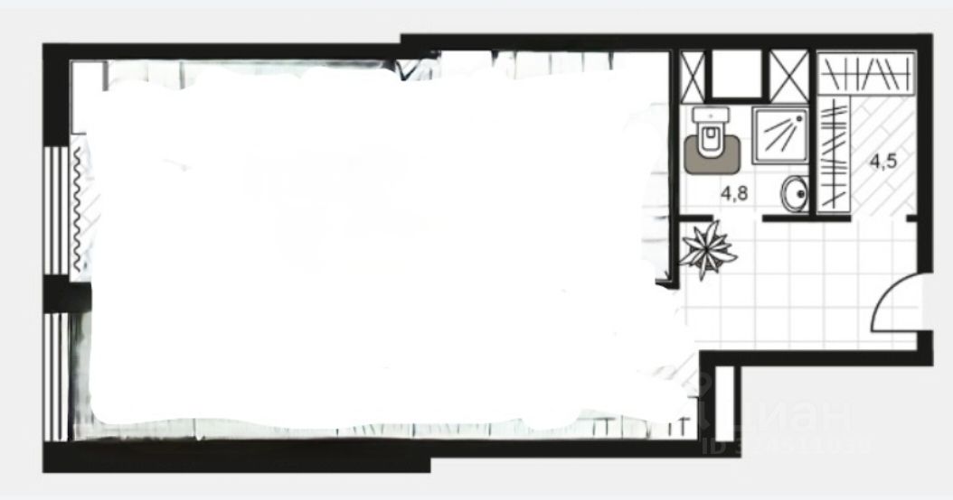 2 окна, 1 мокрая точка. Помещение без несущих стен и перегородок позволяет спланировать помещение под Ваши потребности.