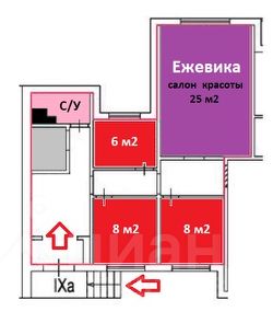 Соседний арендатор салон красоты Ежевика (парикмахерская, маникюр).