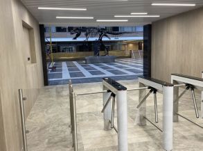 Офис с открытой планировкой, панорамное остекление, кондиционер.