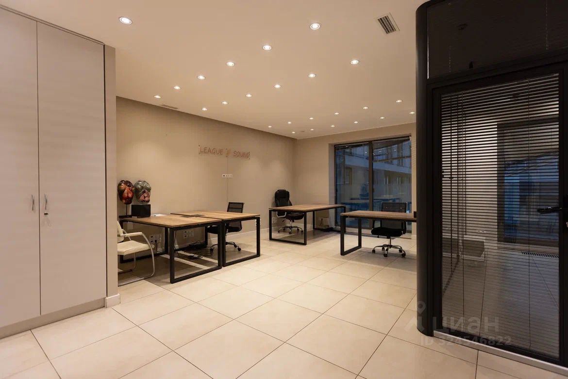 Удобная планировка; open space + переговорная или кабинет руководителя. Кухня, сан/узел, несколько шкафов для хранения, кондиционеры, жалюзи, окна в пол, французский балкон. Вид в тихий красивый внутренний двор.