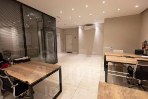 Офис поделен на два помещения за счет установленных стеклянных перегородок.