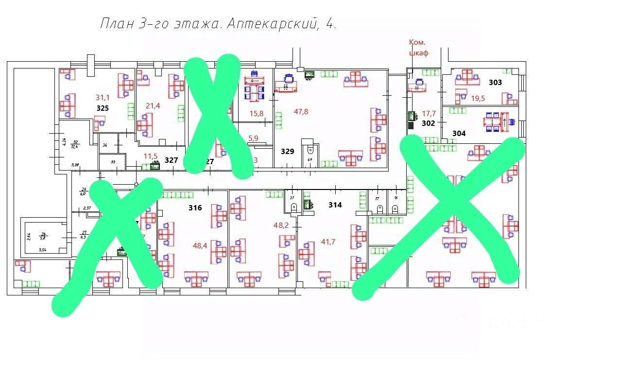 Предлагаем к аренде офис 163 м² на 3 этаже. Ваш офис в здании Аптекарский 4 может работать круглосуточно.