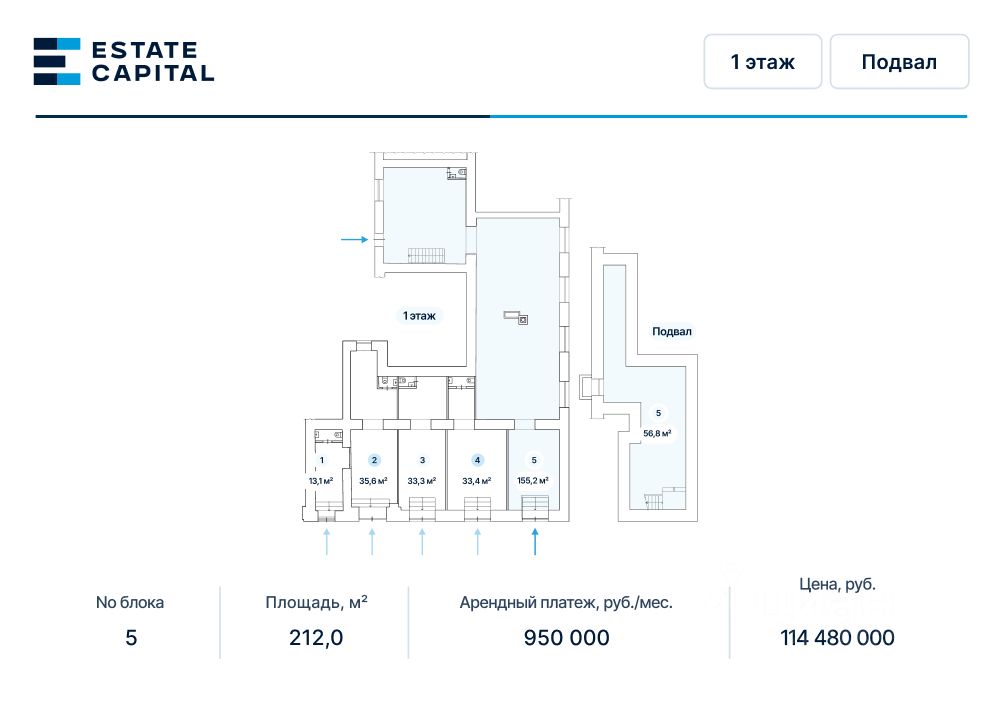 Подробности по телефону или на сайте. Эстейт Капитал - лучшие предложения на рынке коммерческой недвижимости в Москве.