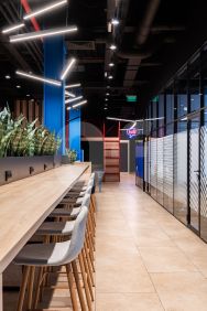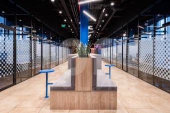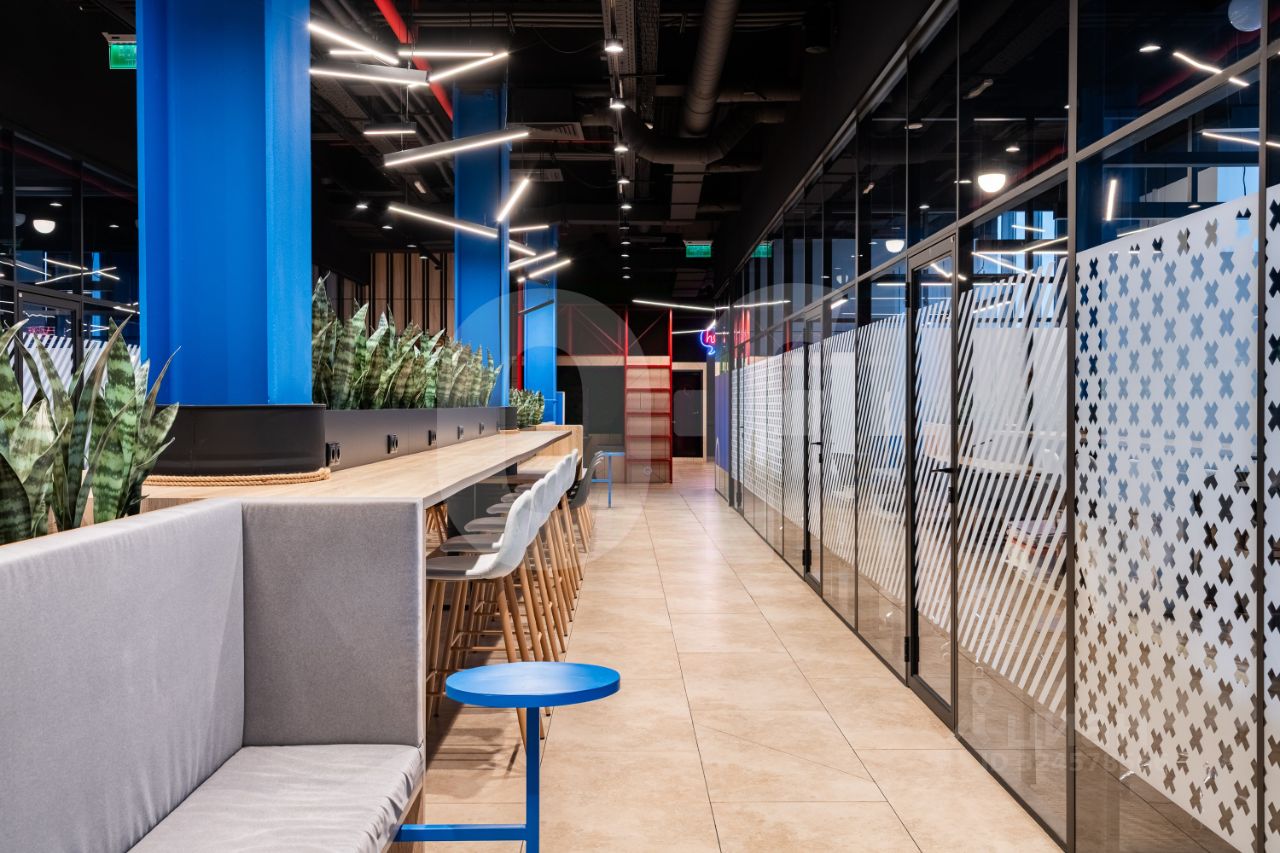 Помещение с функциональной смешанной планировкой. Панорамные окна, переговорные комнаты, обустроенная кухня, собственные санузлы.