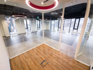Планировка Свободная, выделены кабинеты стеклянными перегородками вдоль стены.
