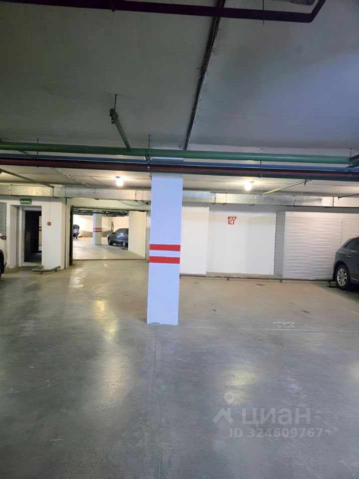 Просторное машиноместо 23 кв.м. В этой локации есть мойка и шиномонтаж. Лифта в паркинг нет.
