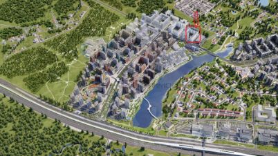 - В радиусе 100-300 метров, остановки общ.транспорта, школа, дет.сад, парковки, пешеходные и автомобильные дороги. Рядом также расположен густо заселенный ЖК Испанские кварталы (24 000 тысячи человек).