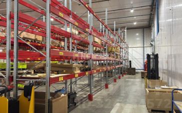 Блок оборудован под склад хранения фреш-продукции, установлены стеллажи.
