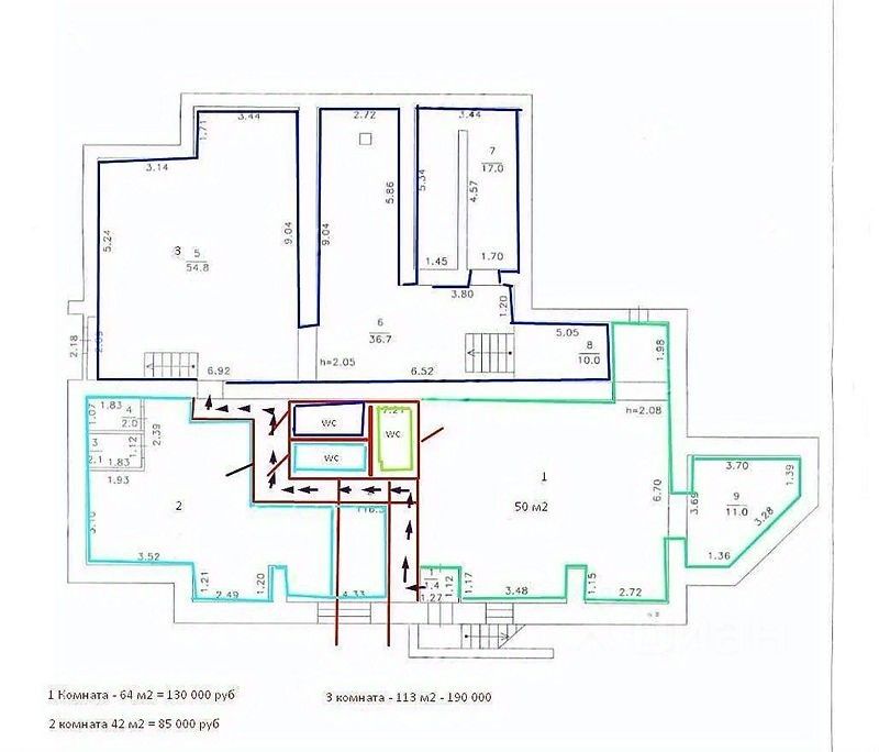 БЕЗ КОМИССИИ! Жилой дом бизнес-класса. Сдаётся блок с санузлом в цокольном этаже площадью 64 кв.м с отдельным входом с улицы. Новое помещение под чистовую отделку (Shell&Core). Электрическая мощность 45 кВт.УСН. 1-й Волконский переулок, 15, 6 минут пешком от метро Цветной бульвар.