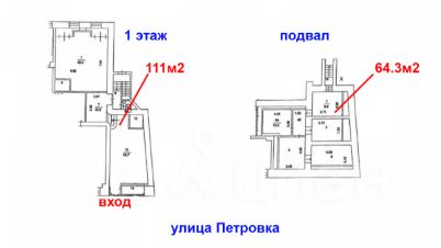 Помещение в два уровня: подвал 64.3 м² и 1-й этаж 111 м². Открытая планировка и большие витрины, обеспечивающие отличную видимость вашего бизнеса. Высокий трафик гарантирует постоянный поток потенциальных клиентов.