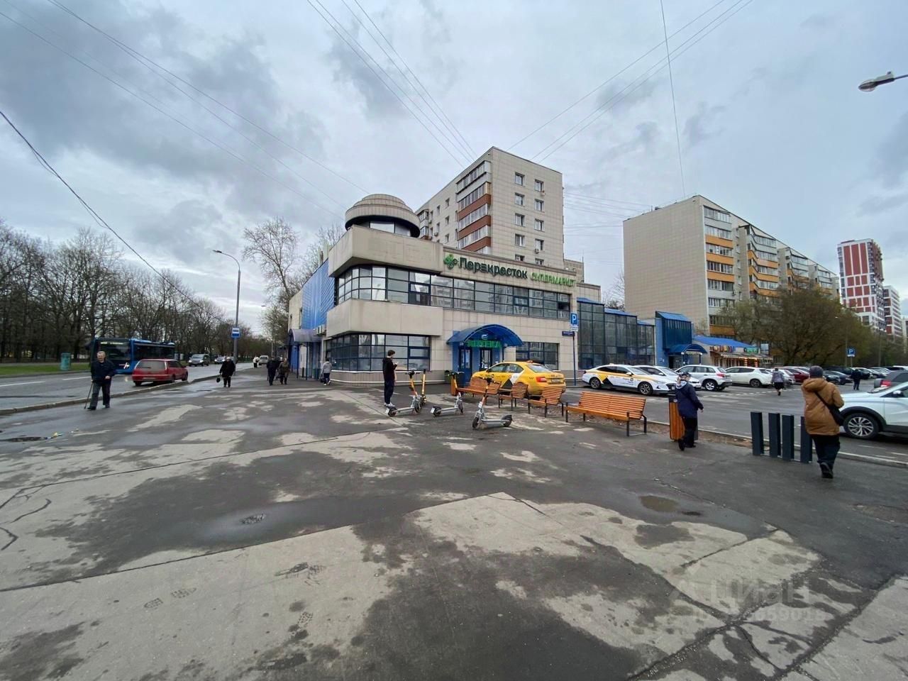 Помещение в отдельно стоящем здании, на первом этаже супермаркет Перекрёсток. Перед зданием парковка.