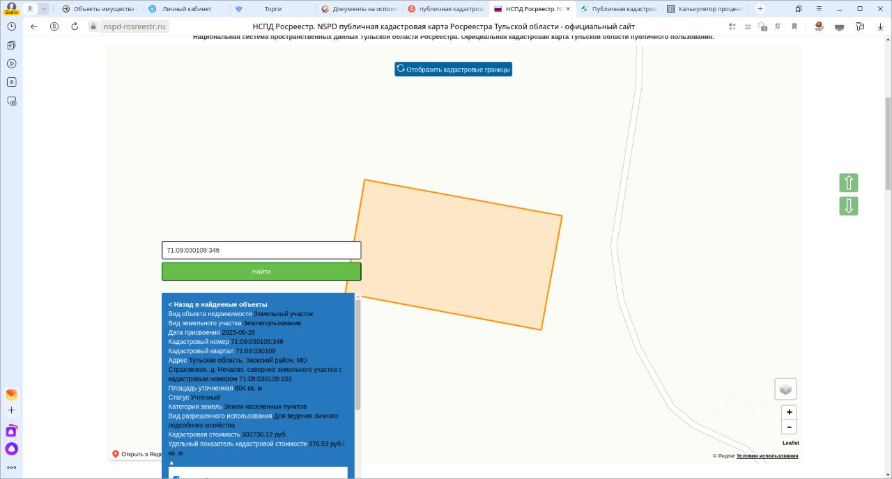 право заключения договора аренды земельного участка из земель населенных пунктов с кадастровым номером 71:09:030109:346 площадью 804 кв. м, адрес: Тульская область, Заокский район, МО Страховское. д. Нечаево, севернее земельного участка с кадастровым номером 71:09:030109:333, вид разрешенного использования: для ведения личного подсобного хозяйства.