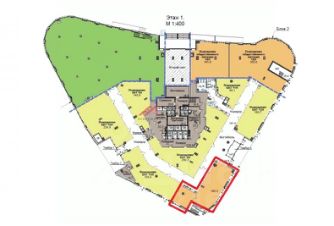 Помещение 186,3 м2, располагается на 1 этаже торговой галереи, открытая планировка, высота потолка 5,5-6 м, витринные окна по фасаду. Место для размещения рекламы. Две входные группы с фасада, есть возможность деление на блоки от 50 м2 или увеличения площади за счет присоединения соседнего помещения 375 м2. Из всех помещений предусмотрен выход в торговую галерею. Все коммуникации