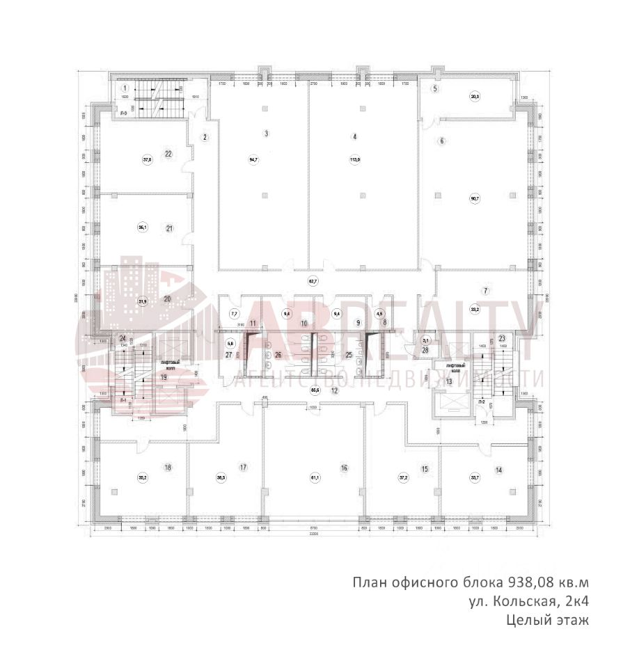 Офисный блок 938,08 кв.м занимает целый 6-ой этаж. Со своими санузлами, лифтовым холлом.