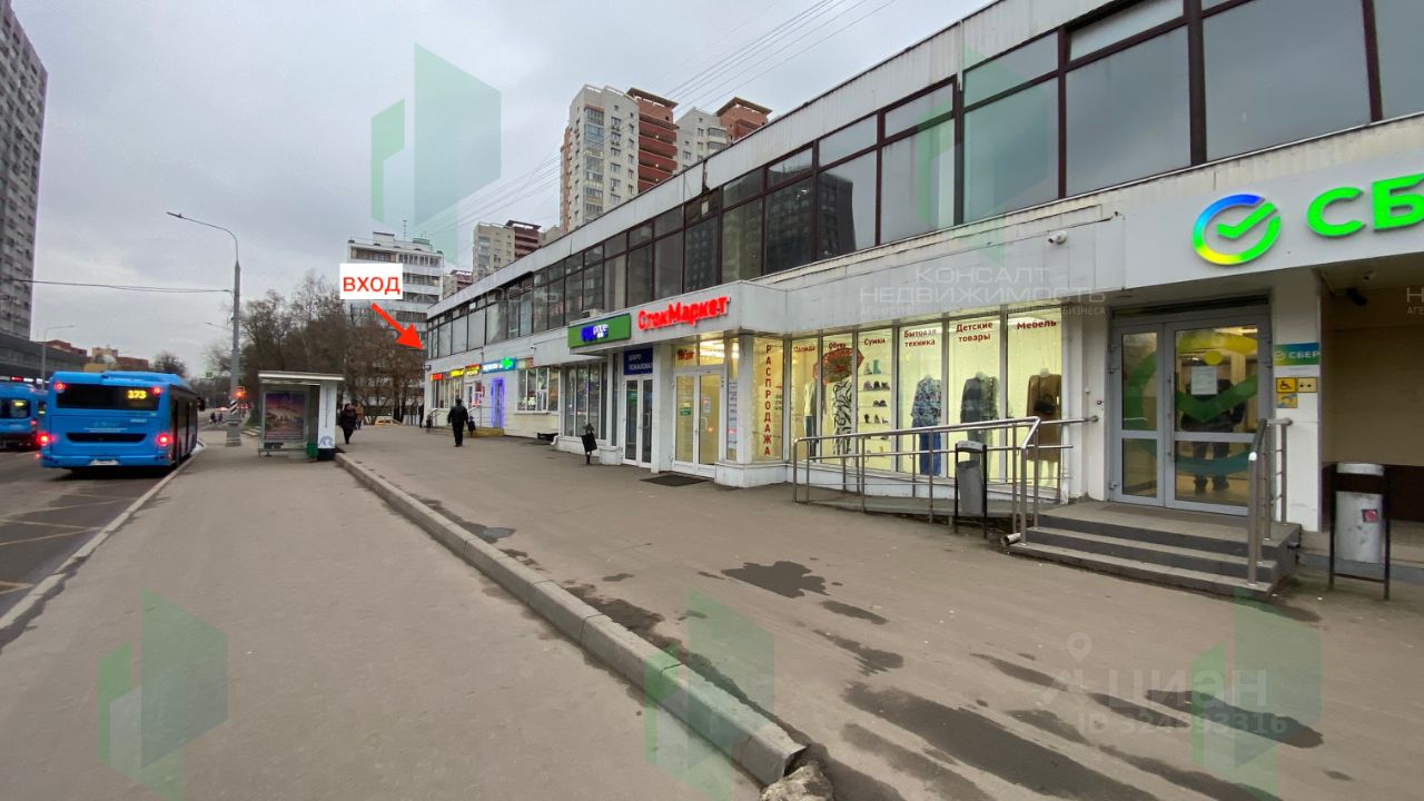 Перед входом в помещение остановка общественного транспорта. Напротив бизнес центр.