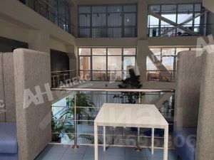 Офис оборудован системами приточно-вытяжная вентиляции, кондиционирования, системой пожарной безопасности. Планировка смешанная - кабинеты различной площади, открытые пространства для коллективной работы, с\у, кухня, серверная, подсобные помещения. В центре стеклянная галерея с атриумом атриумом и зимним садом.