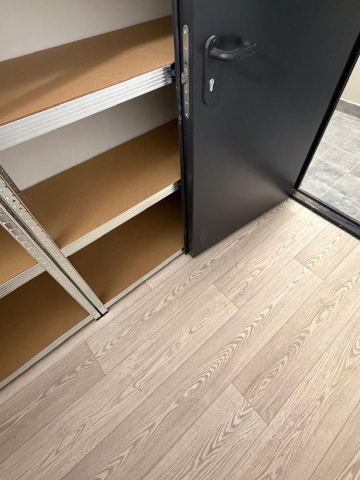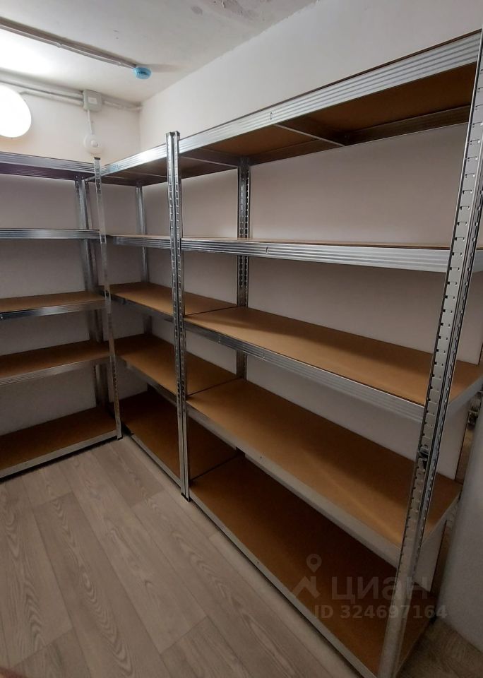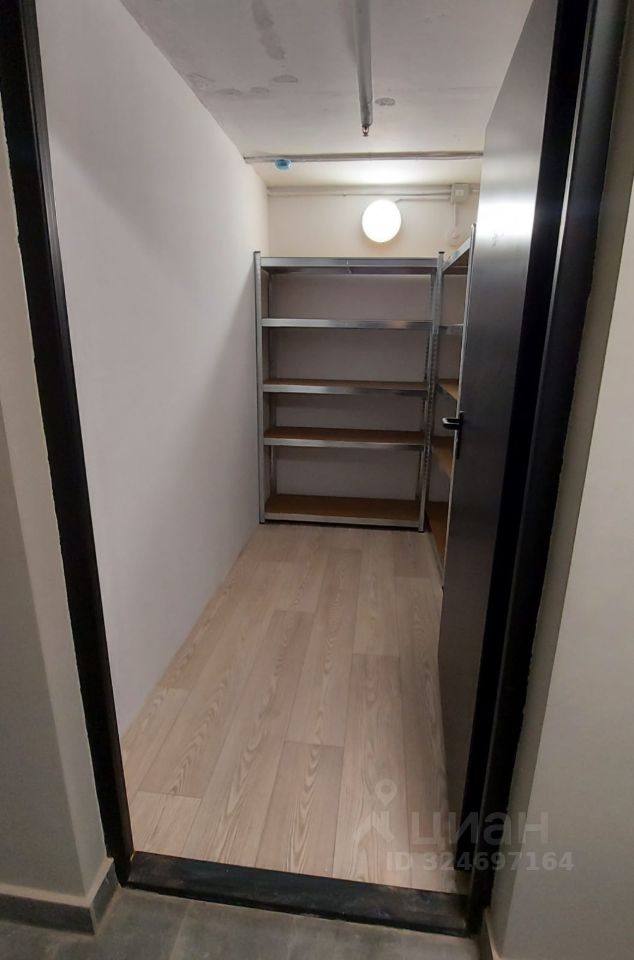 Кладовое помещение, 4,3 кв.м., для хранения вещей, на -2 этаже ЖК Топ Хиллс. Кладовка сухая, чистая, сделан ремонт: на полу линолеум и три больших стеллажа, покрашены стены.