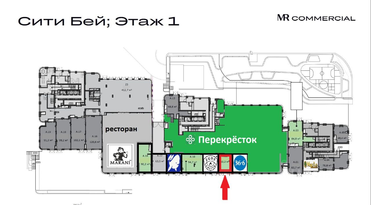Аренда торгового помещения площадью 63.2 м2 в ЖК "City Bay, расположенного по адресу: м.Трикотажная, г. Москва, Волоколамское шоссе, вл.95/2 квартал Атлантик (2-я очередь). ПРЕИМУЩЕСТВА : • Прямая аренда от собственника • Первый этаж стилобата, объединяющего три 54-х этажные свечки • Лучшее расположение в ЖК, между супермаркетом (1200 м2) и рестораном (630 м2) • Пересечение центрального пешеходного бульвара и въезда в ЖК • Пешеходная зона • Пешая доступность: автобус(28 маршрутов) 3 мин, м.Трикотажная 5 мин, м.Мякинино 10 мин • Прямая видимость с Волоколамского шоссе • Торговая галерея • ЖК Сity Ваy — крупнейший проект бизнес-класса на Волоколамском шоссе (18000 жителей 7260 квартир). • Школа им.Курчатова на 815 мест и детский сад ОПИСАНИЕ: • Помещение однообъемное • Большие панорамные окна • Высота потолков 5 метров • Отдeльный вxод c улицы • Рекламное место на фасаде • Элeктричествo: 29 кВт • Приточная вентиляция с подогревом воздуха УСЛОВИЯ: • Арендная ставка за помещение 63,2 м2 - 5700 руб/м2/мес •НДС 5%; УСН •Коммунальные платежи оплачиваются по факту
